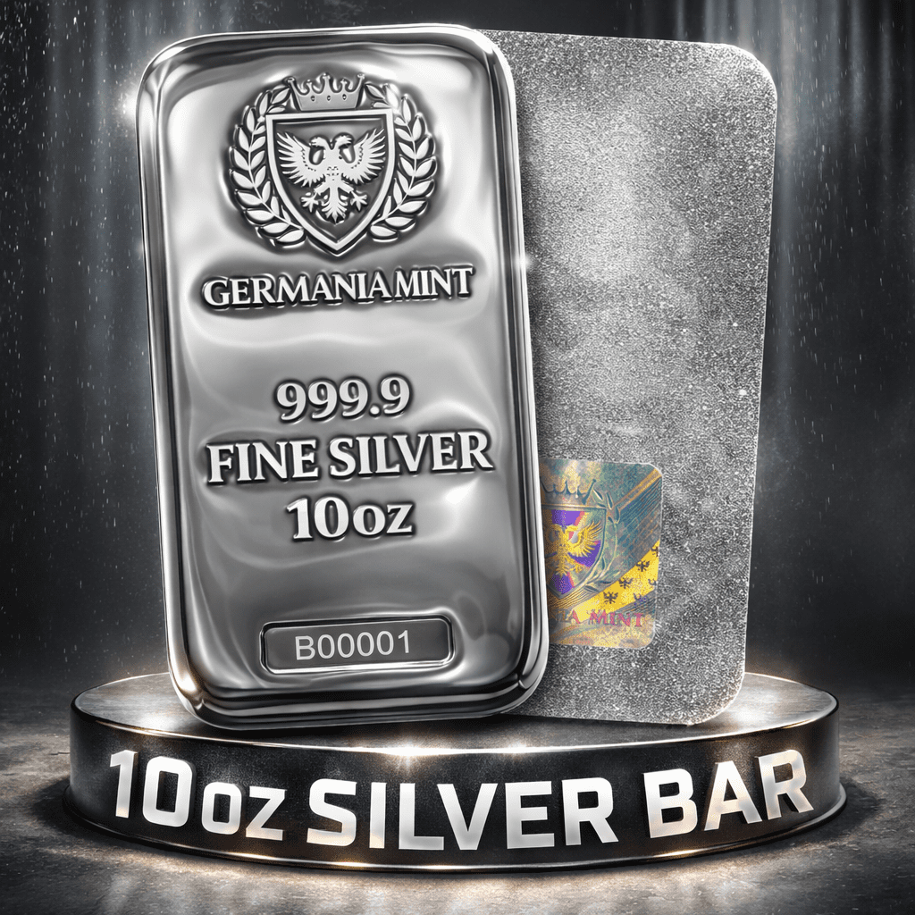 10 OZ PURE SILVER BAR GERMANIA MINT BRAND NEW & BOXED – RRP £1,000!