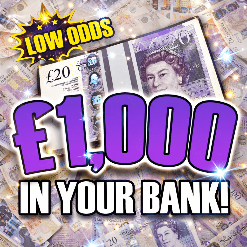 Simple and easy win yourself £1,000 with super low odds. We all love a bit of cash, treat yourself to whatever you want, go on test your luck, and grab a ticket!