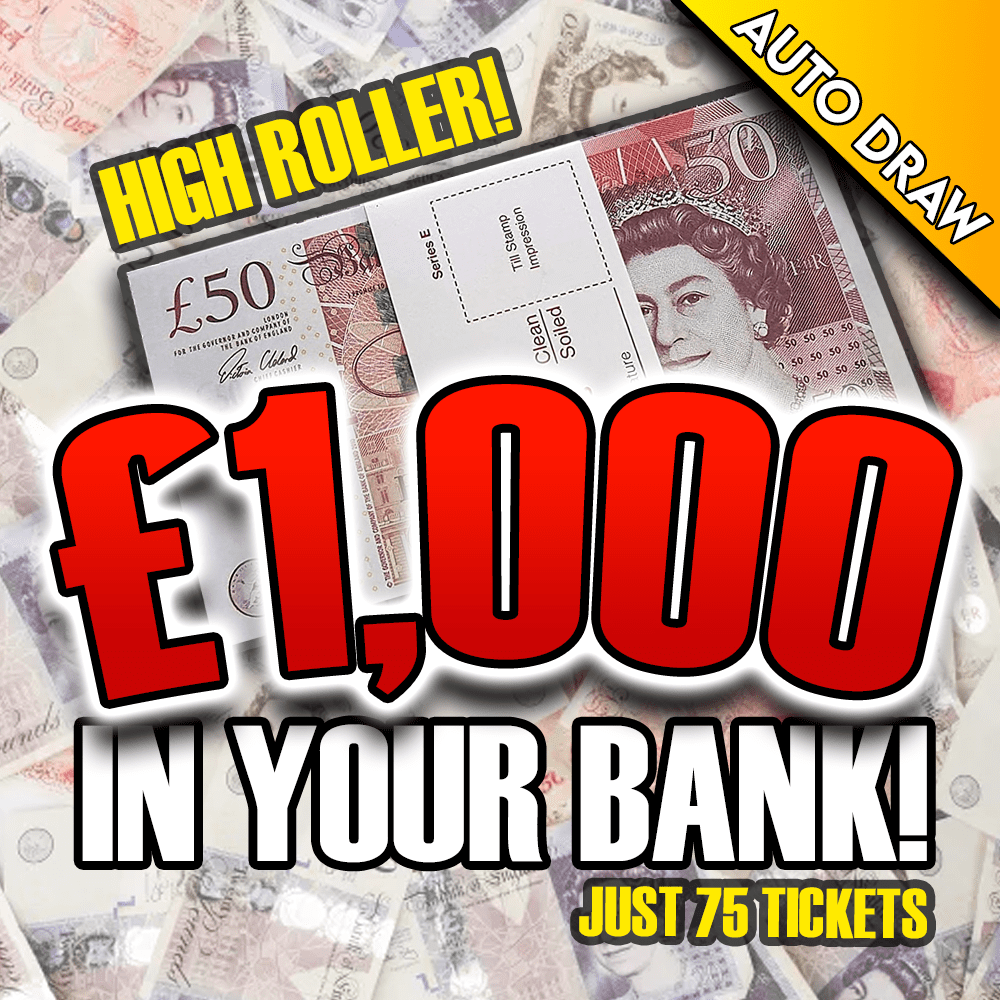 Simple and easy win yourself £1,000 with super low odds. We all love a bit of cash, treat yourself to whatever you want, go on test your luck, and grab a ticket!