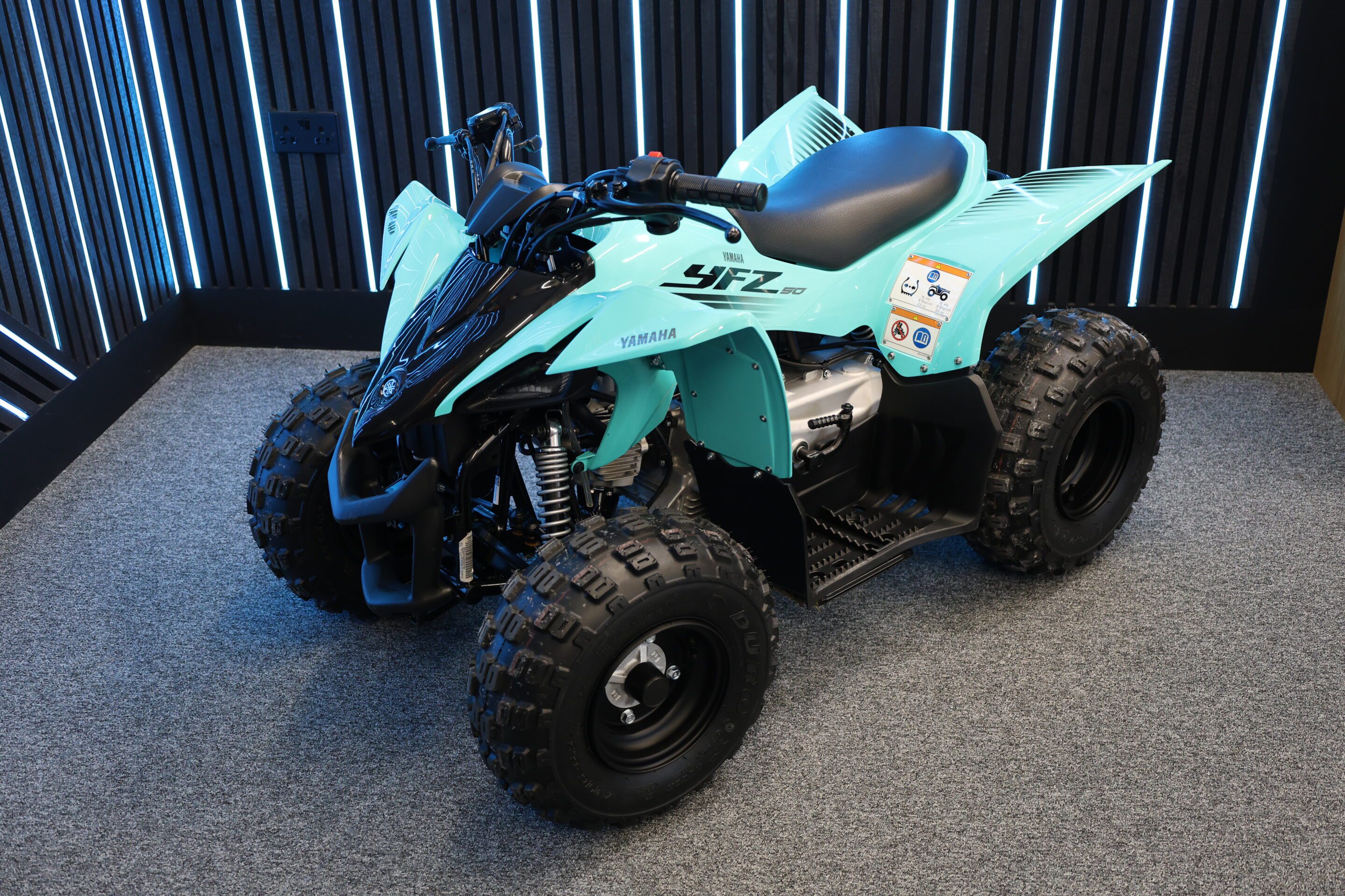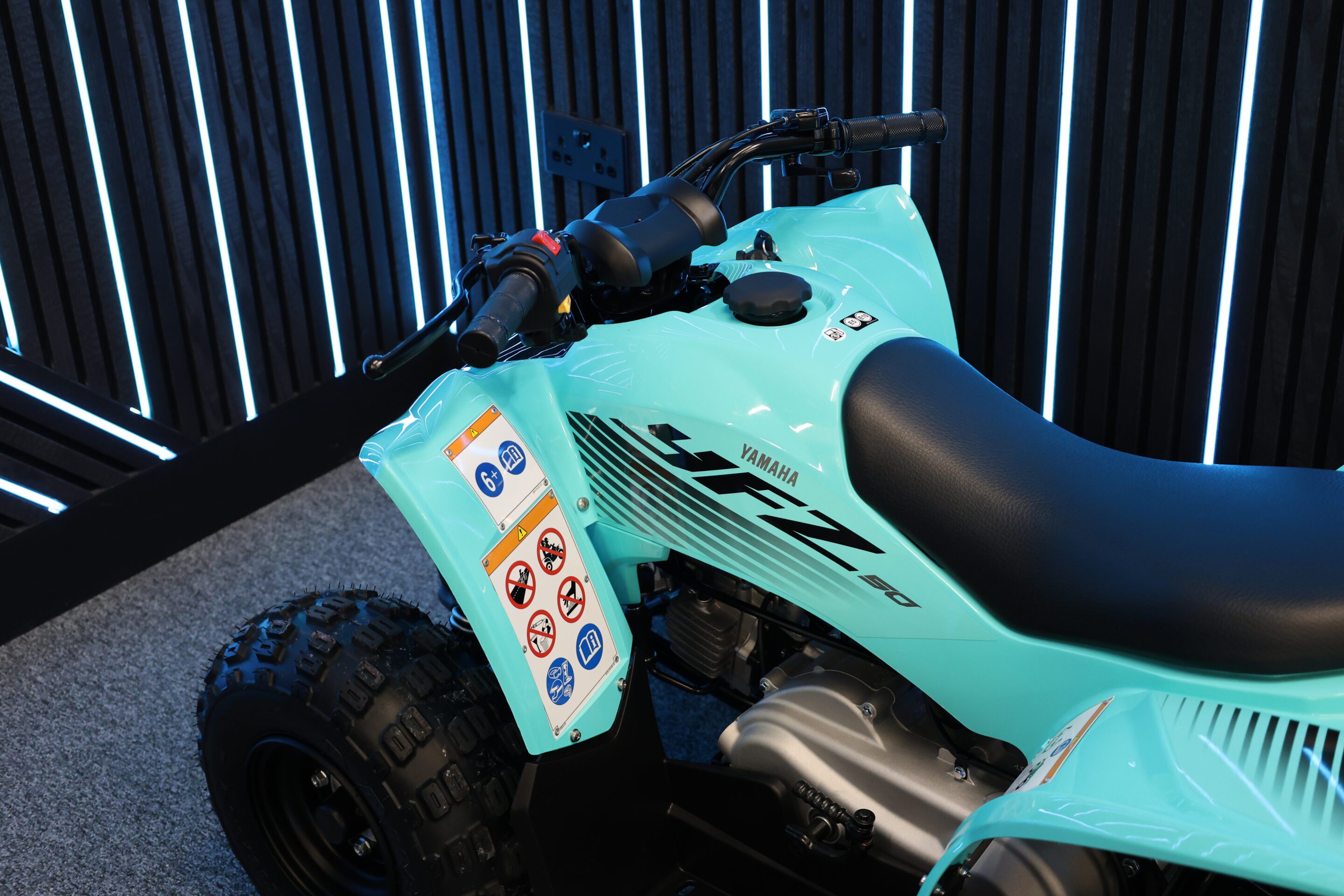 I absolutely love this. Here we have a 2025 YAHAMA YFZ50 in this amazing Teal colour. Such an iconic, cool quad that looks amazing perfect for the summer.