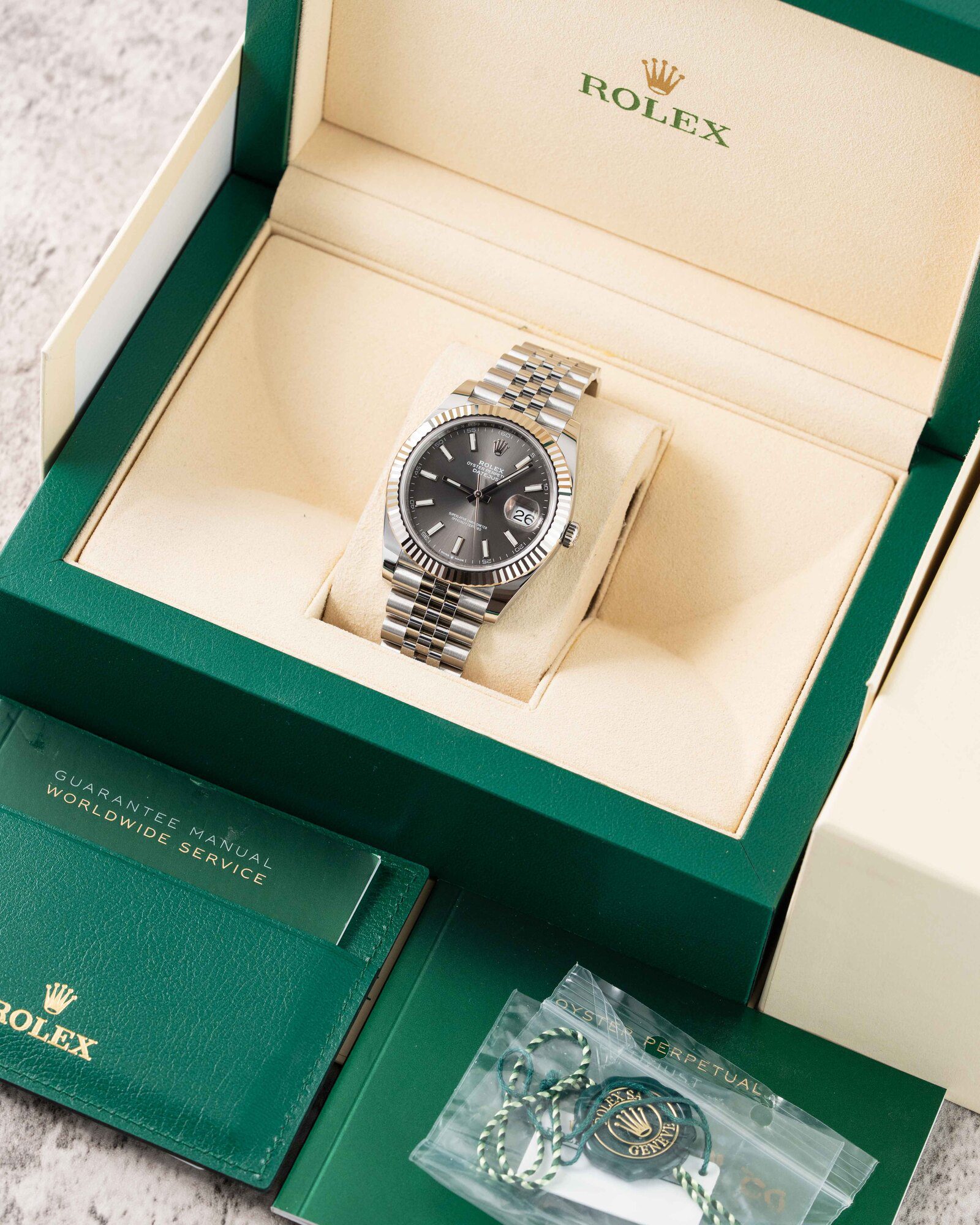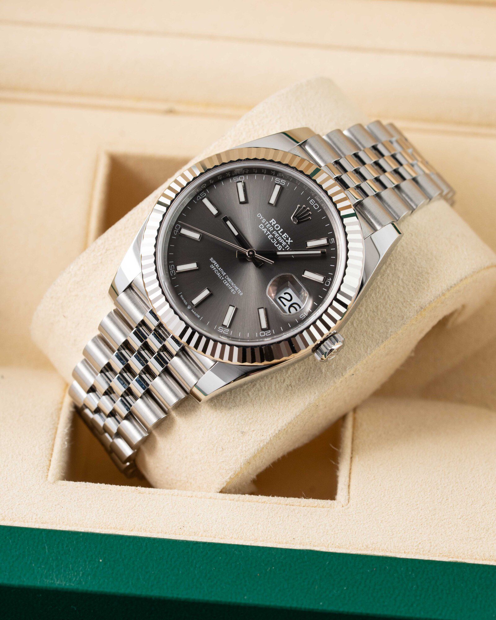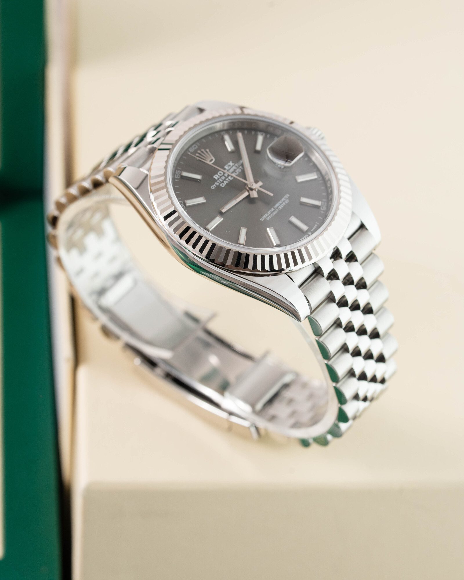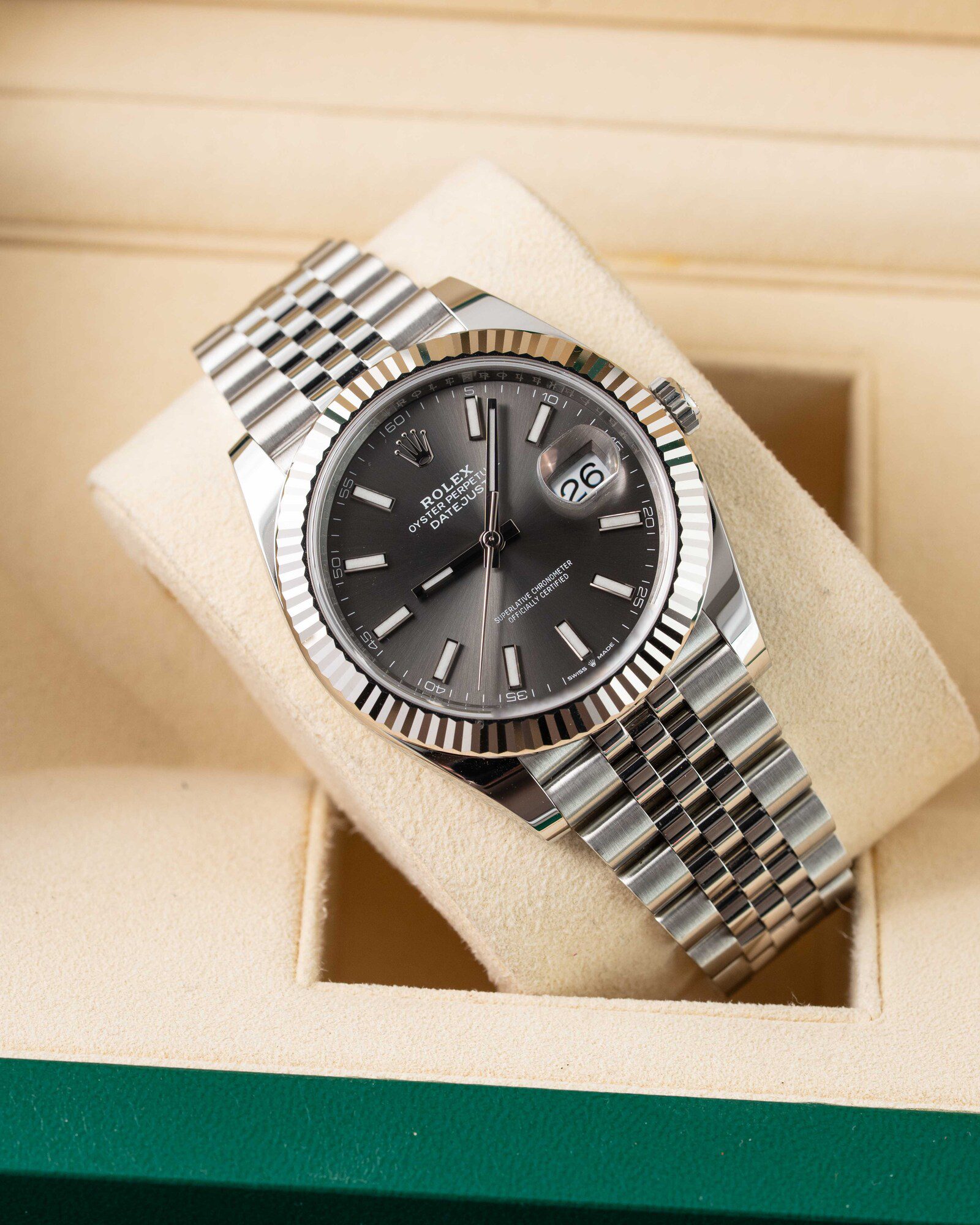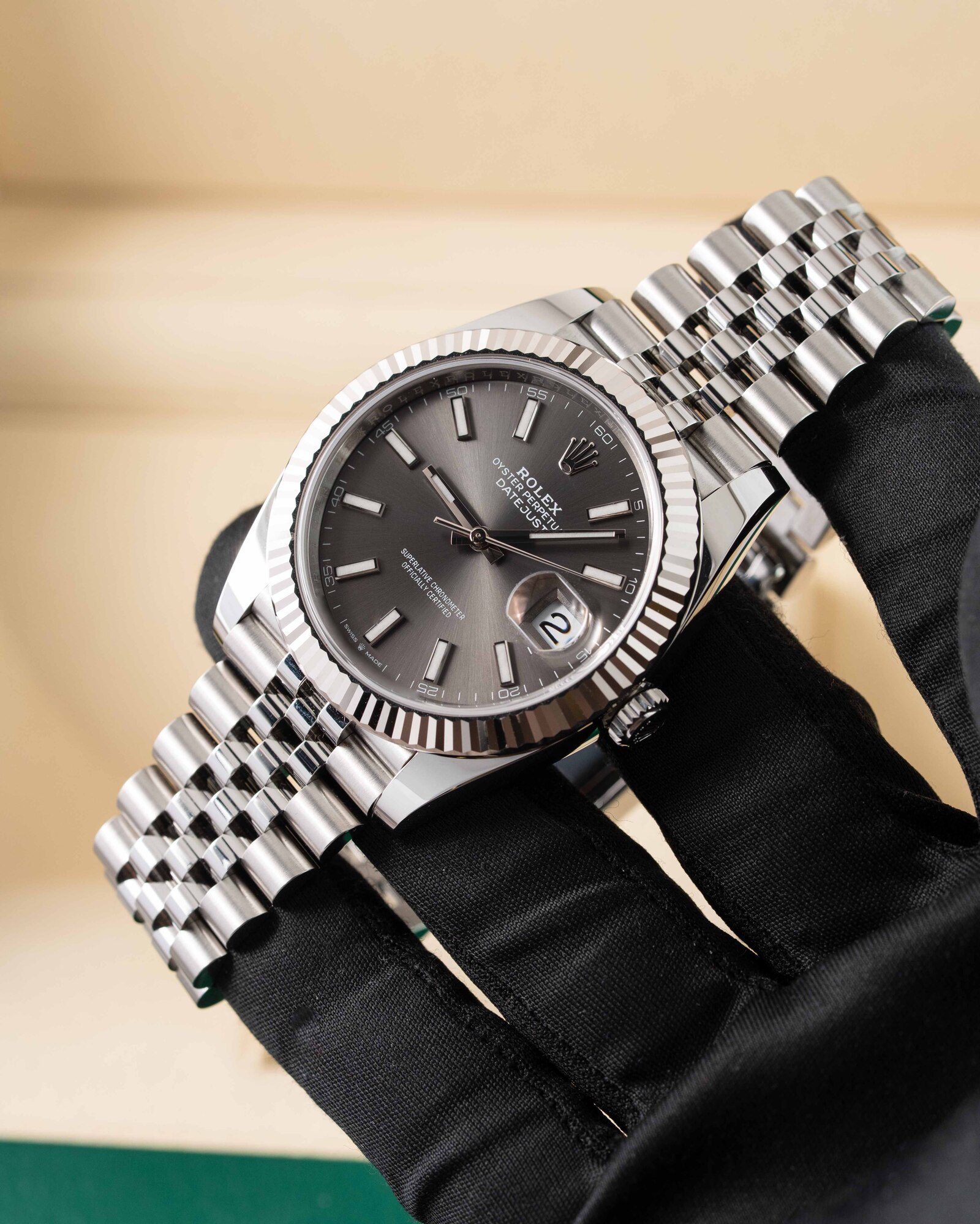 One of the cleanest, most eye-catching Datejusts out there. The 41mm stainless steel case, paired with that sleek rhodium dial, sits perfectly on the iconic Jubilee bracelet, finished with a fluted white gold bezel… it’s pure class ✨