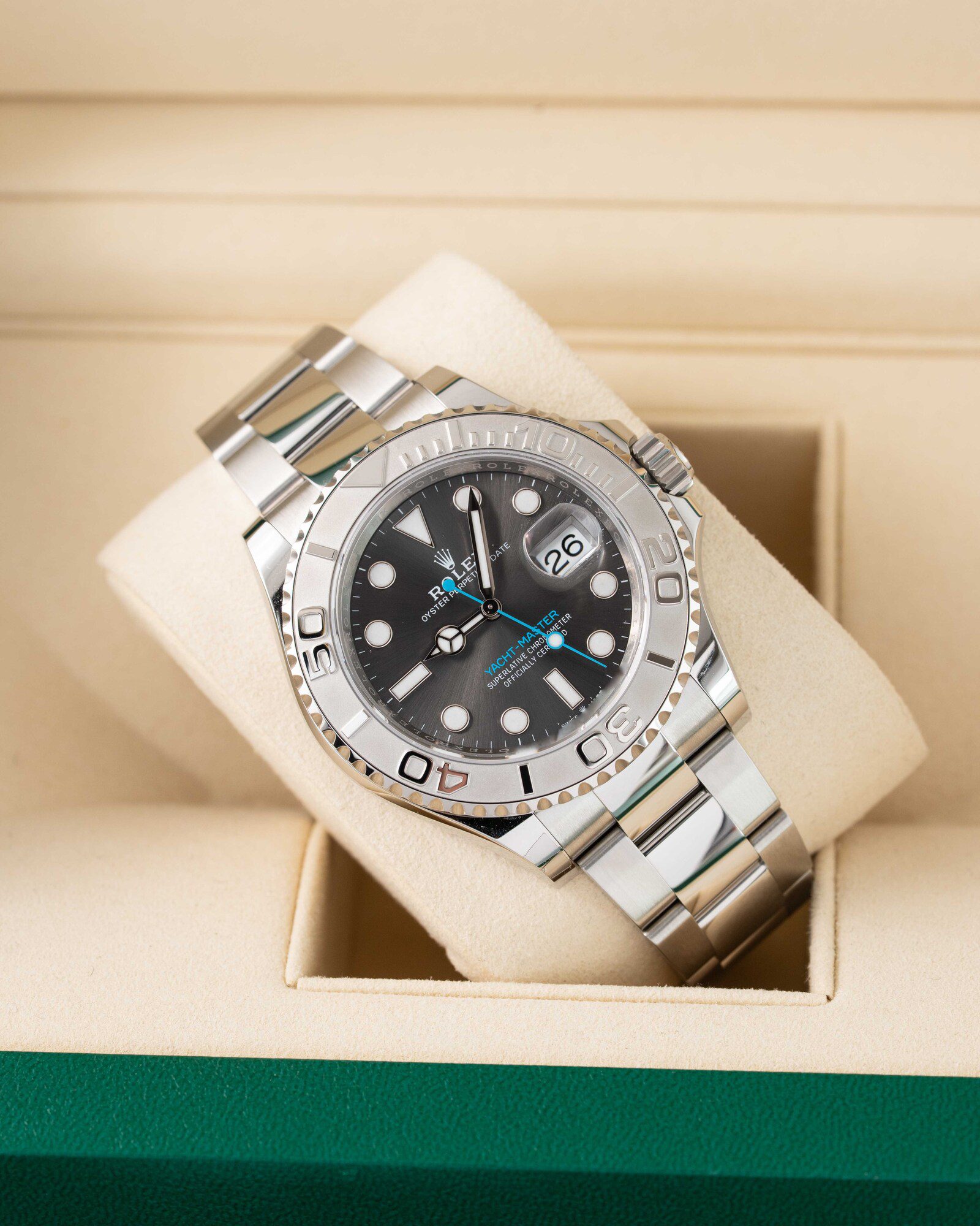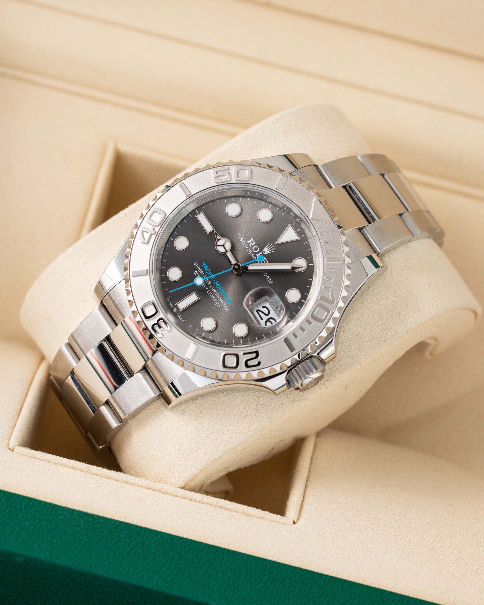 💎 Finished with the eye-catching Tiffany blue seconds hand, this dial is hugely sought-after and seriously stylish.
