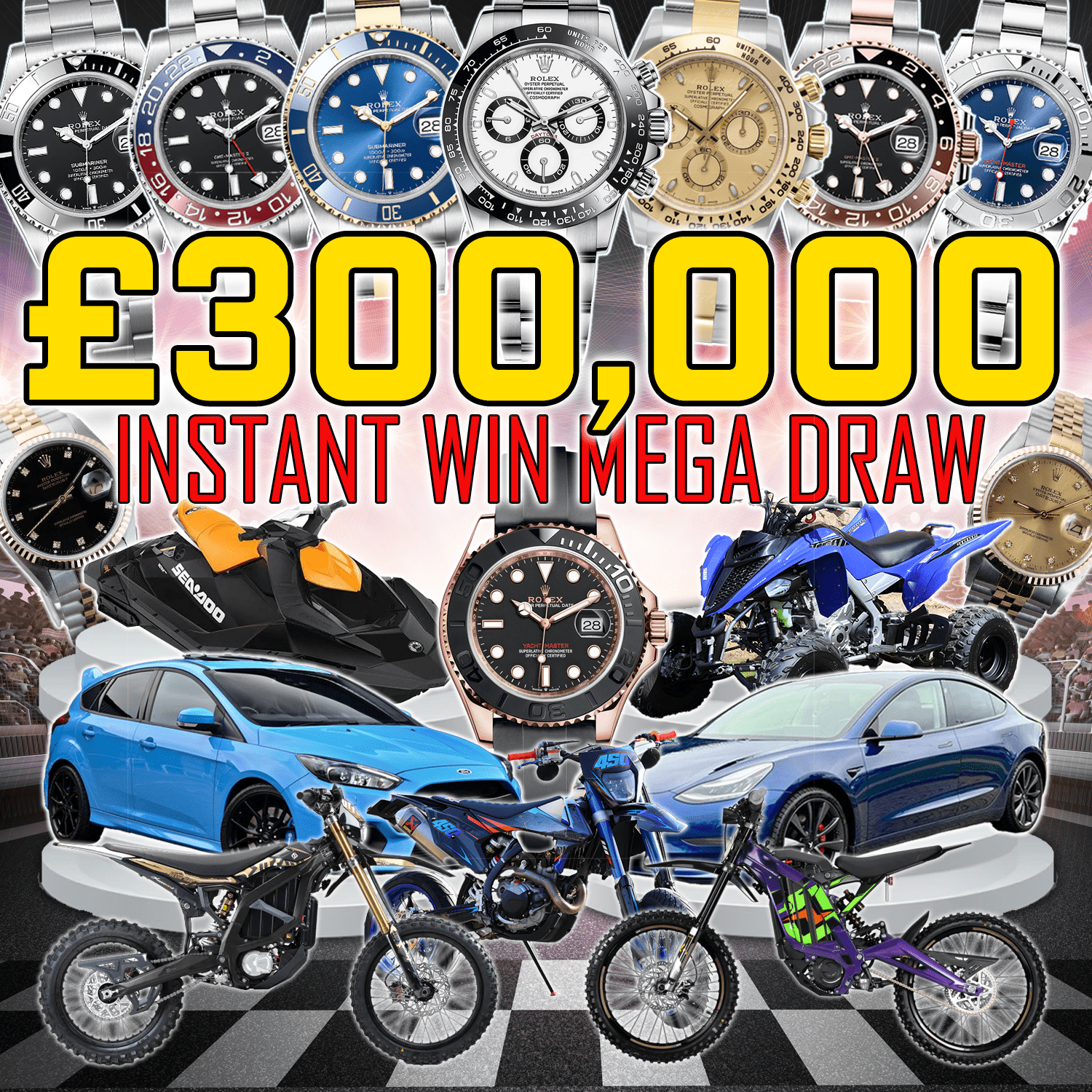 £300,000 INSTANT WIN MEGA DRAW! – Cars, Cash, Bikes & Watches!