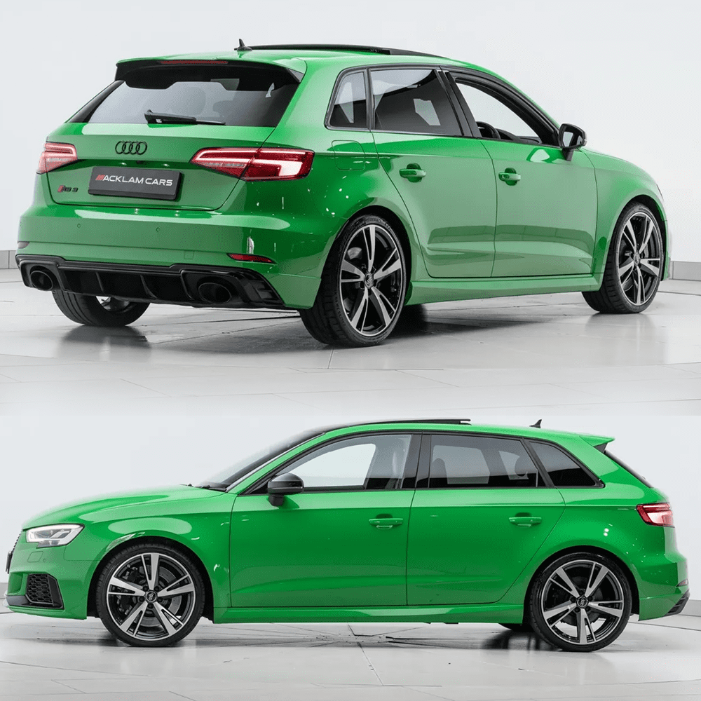 This particular Audi RS3 comes in Viper Green with a contrasting Black Exterior Sports Package. This is paired up with the 19″ Diamond Cut Alloys and an incredible list of optional extras, making it a dream to drive. Experience a super-quick, agile family motor that can be incredibly fun to drive and then transform back into a daily, spacious, luxury motor in seconds.