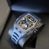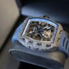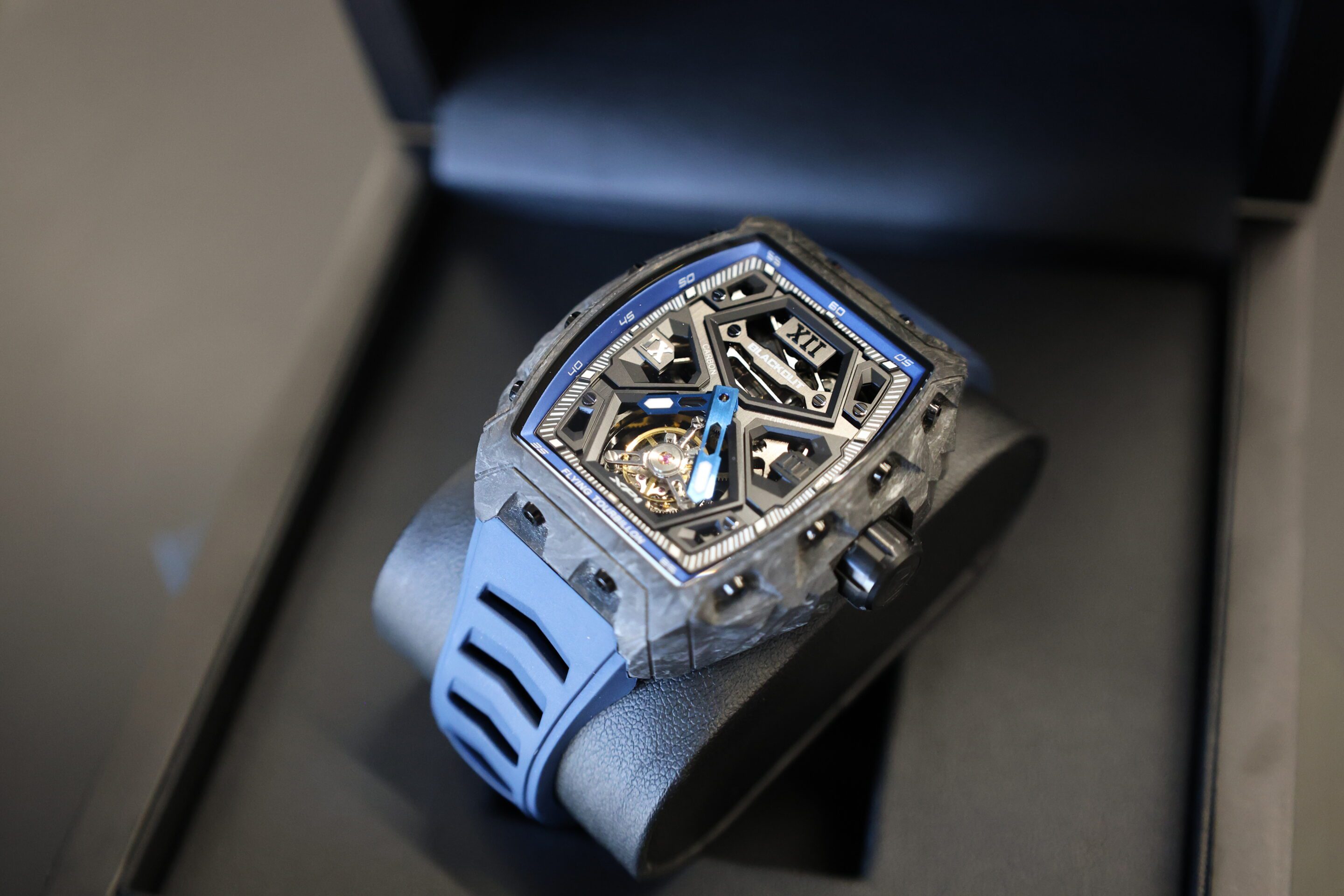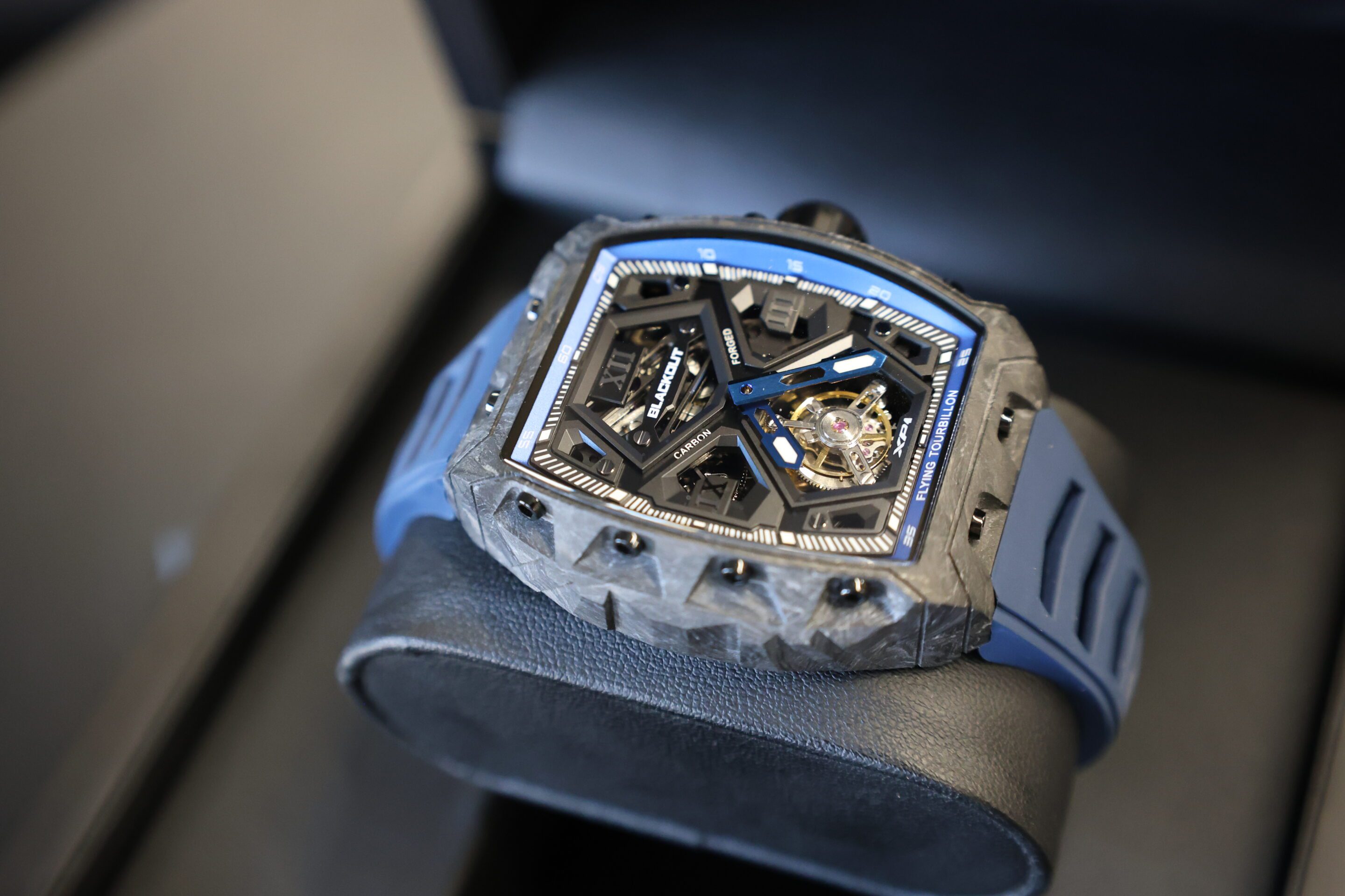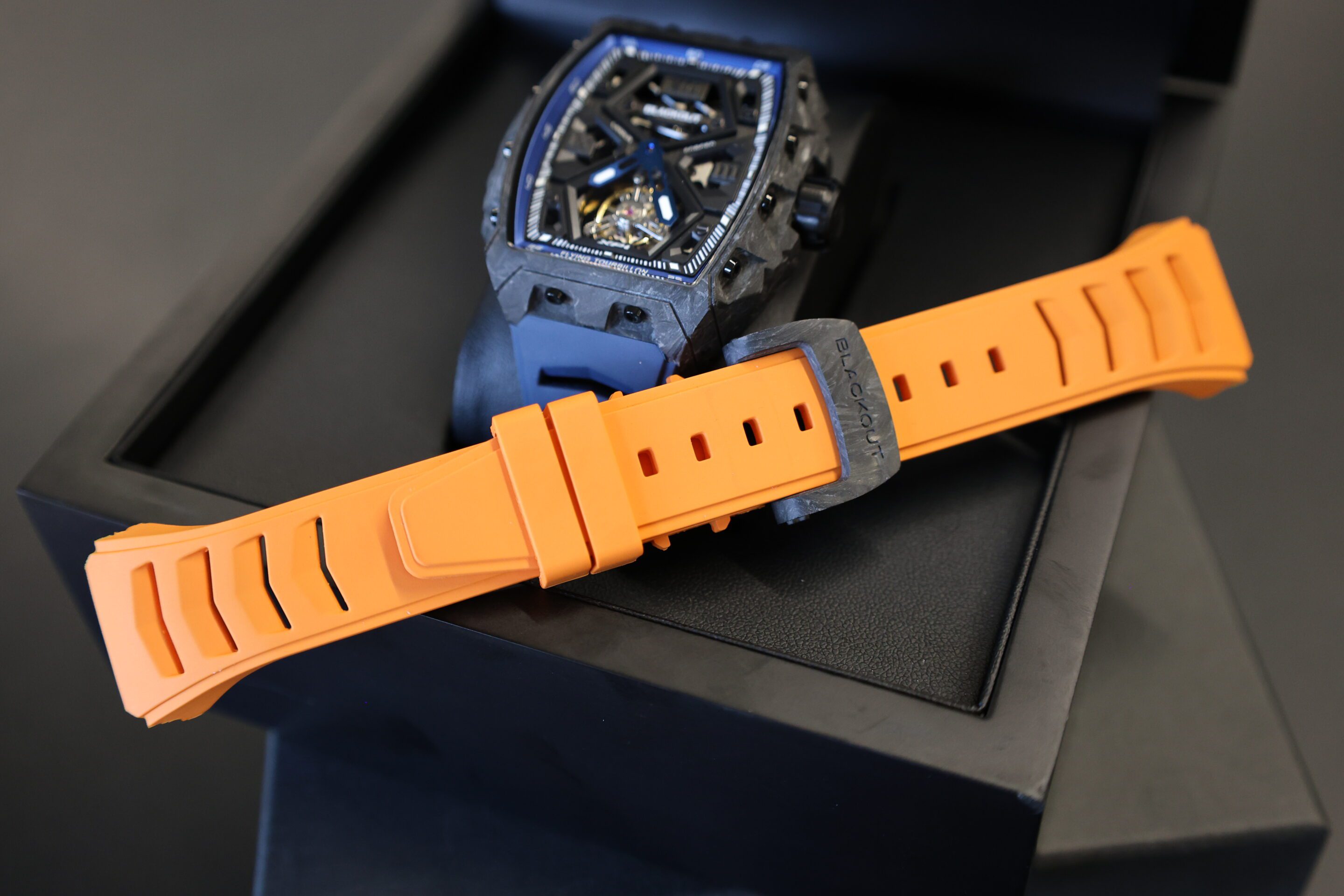 This is an absolute standout timepiece. The Blackout XP1 Tourbillon features a striking forged carbon fibre case with bold blue accents—giving it a premium, modern look that feels just as good on the wrist as it looks.