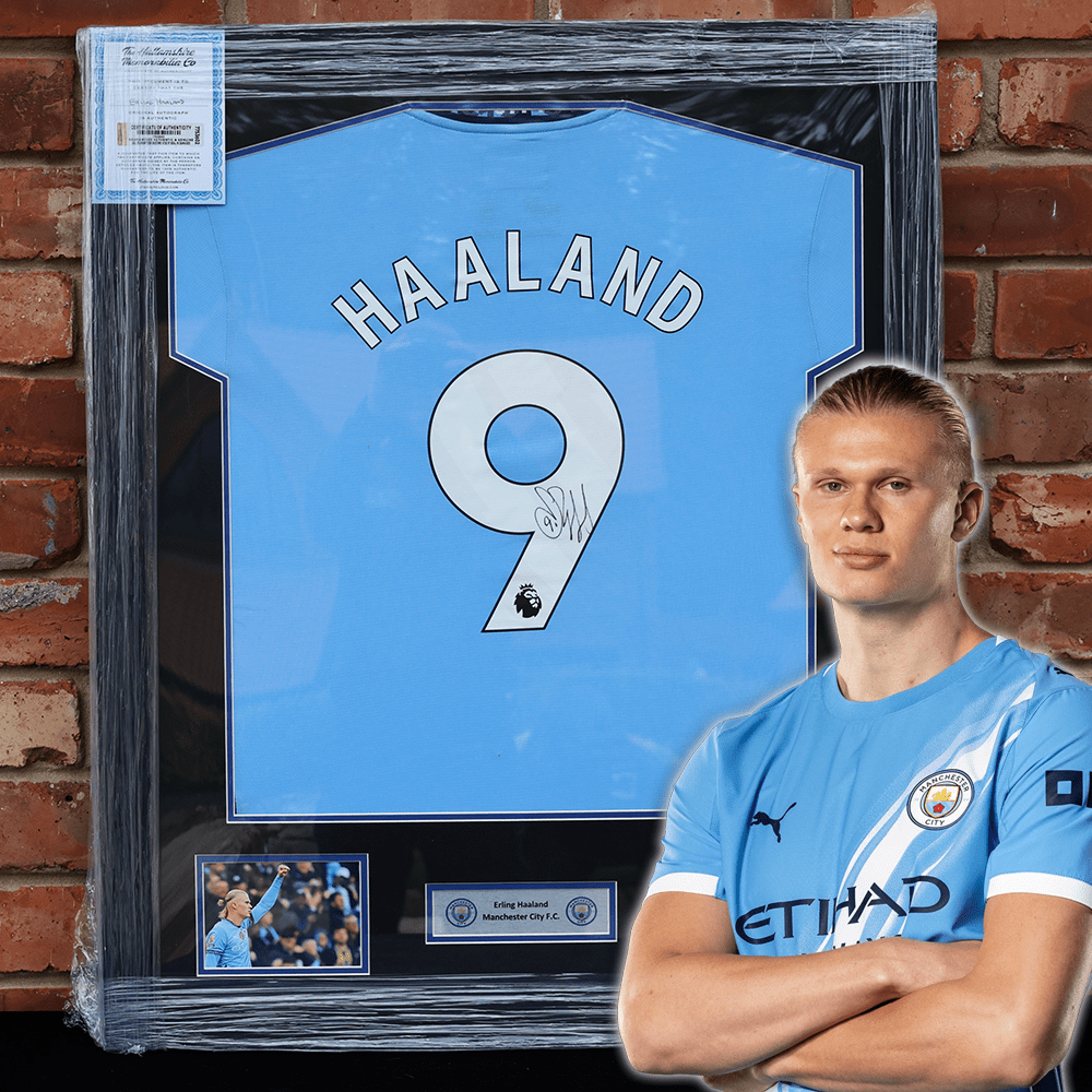 Here we have a framed and signed Man City Shirt by arguably the best player on the planet right now, Mr Erling Haaland!