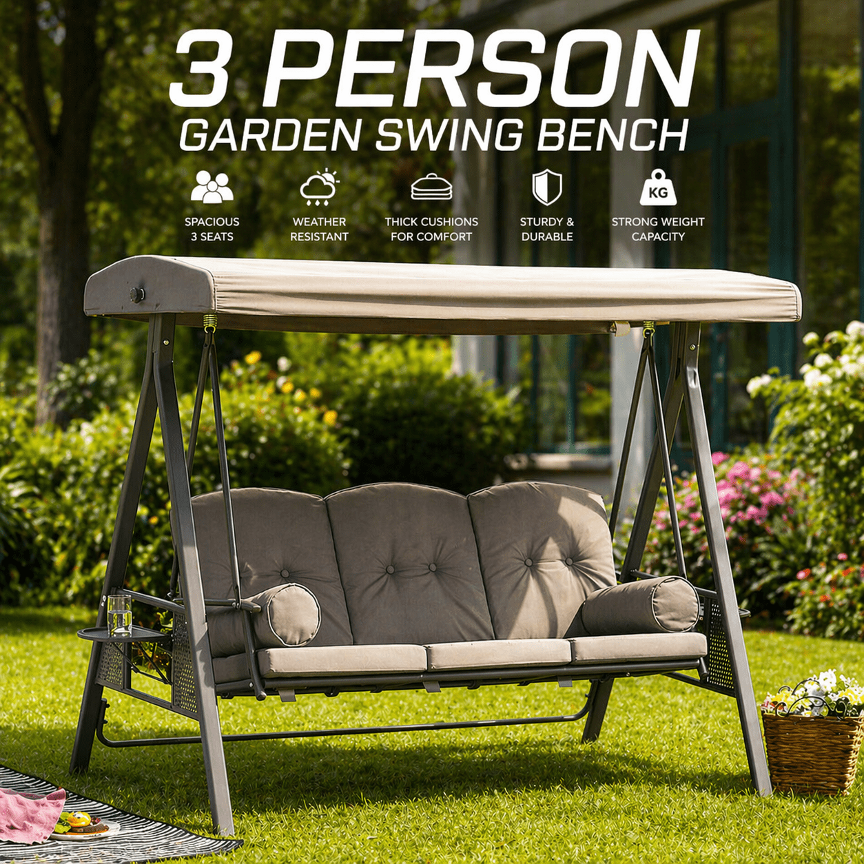 Win this stunning 3-person outdoor swing bench! 🌿✨