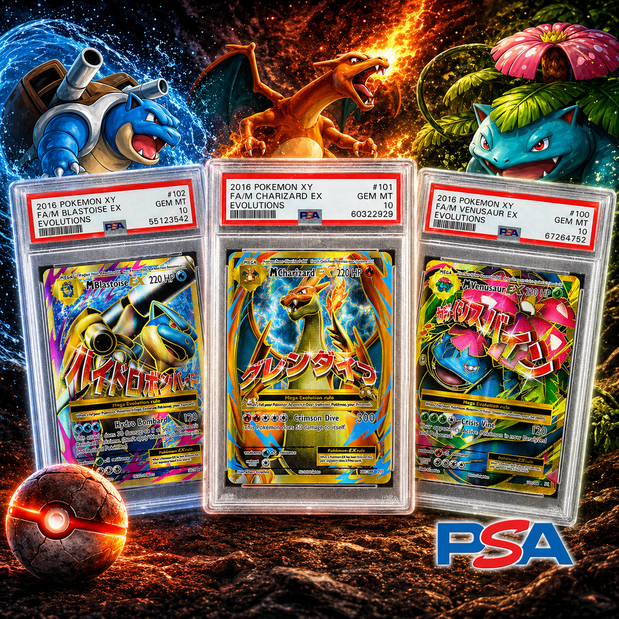This is seriously INSANE! 🤯🔥 Your chance to win all THREE grail cards from the iconic Pokémon 2016 XY Evolutions series—each graded a flawless PSA 10 💎