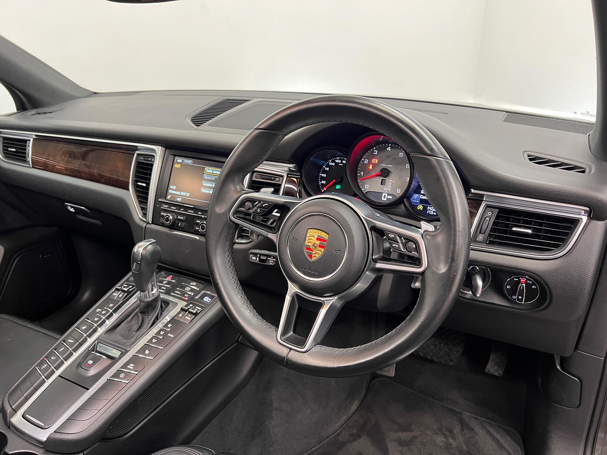 SPECIFICATION – Air Suspension with Porsche Active Suspension Management (PASM), Power Steering Plus, 75L Fuel Tank, Heated Multi Function Steering Wheel, Panoramic Glass Sunroof, Roof Rails in Black, Seat Heating – Front/Rear, Central Locking with Keyless Entry, Side Airbags with Head Airbags, Dark Walnut Interior Package, Porsche Communication Management System (PCM), Park Assist (Front/Rear) with Reversing Camera, Xenon Headlights with PDLS+ (dynamic high beam), Adaptive Cruise Control with Porsche Active Safe (PAS), Smoking Package (additional power slot), Traffic Sign Recognition, Telephone Module, 20in Macan SportDesign Alloys, Automatically Dimming Mirrors, Adaptive Sports Seats (18-way) with Memory, Storage Bin Package, Voice Control, Window Trims In Black, Online Services, Garage Door Opener (HOMELINK), 2 Keys Plus Much More.
