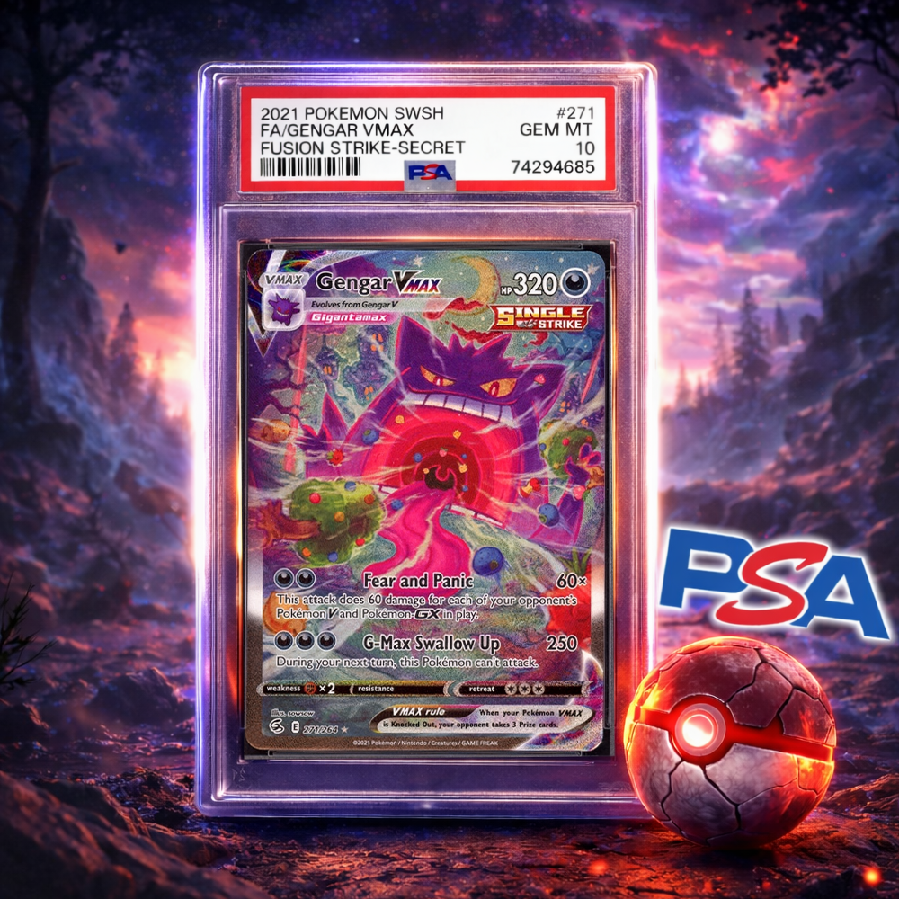 🔥 PSA 10 Gengar VMAX 271/264 – Fusion Strike Secret Rare 🔥