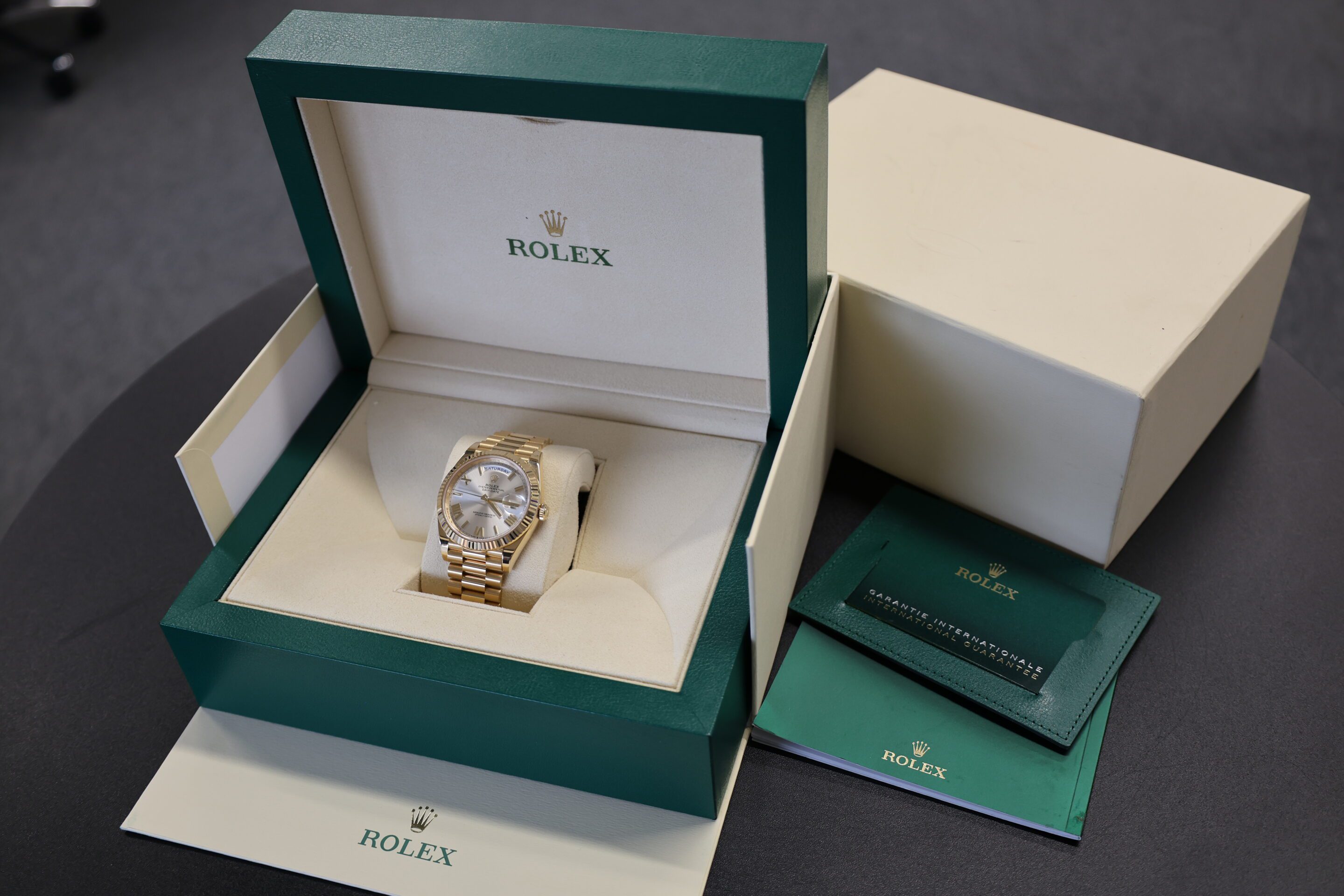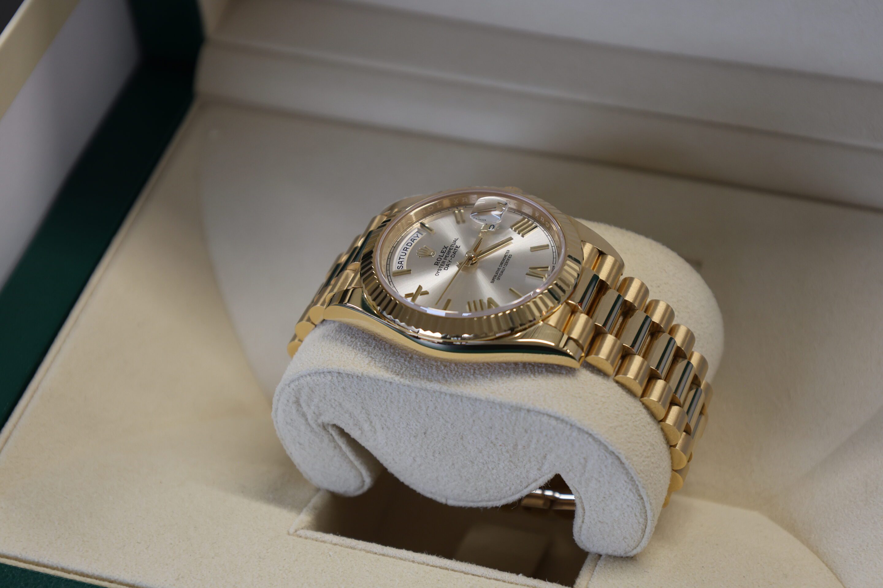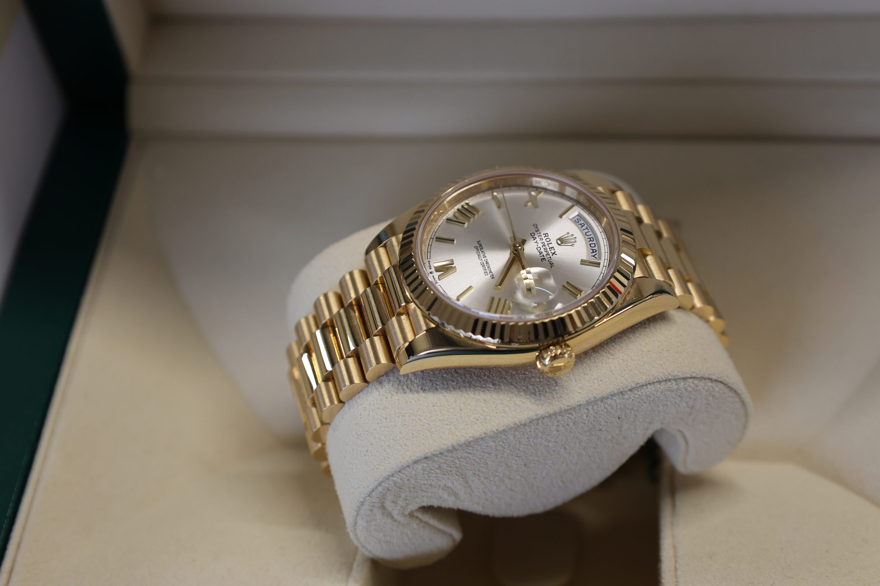NOW THIS IS A WATCH! SOLID YELLOW GOLD DAY-DATE 40 WITH THE STUNNING SILVER DIAL. RRP £43,100