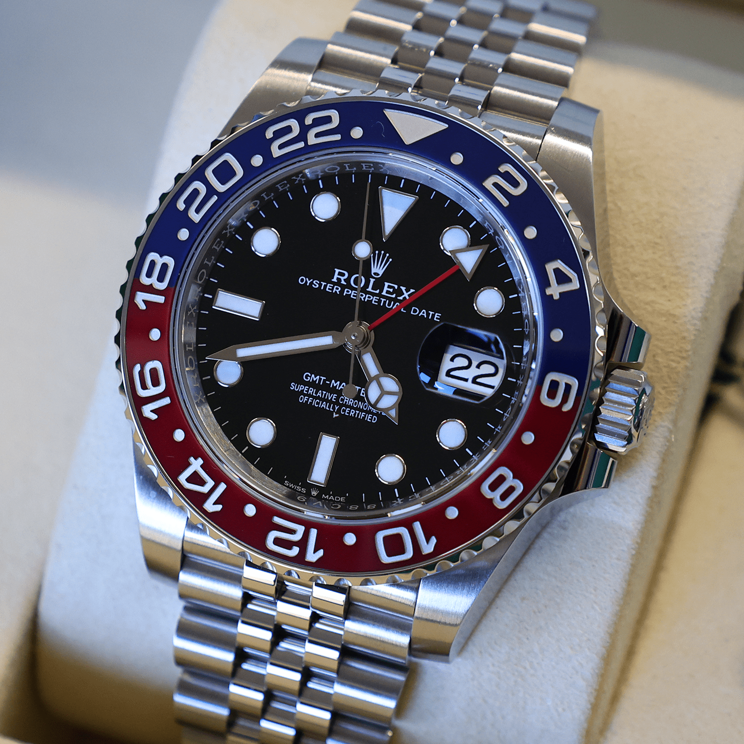Here we have one of my absolute favourite pieces — the legendary Rolex GMT‑Master II Pepsi 126710BLRO ⌚