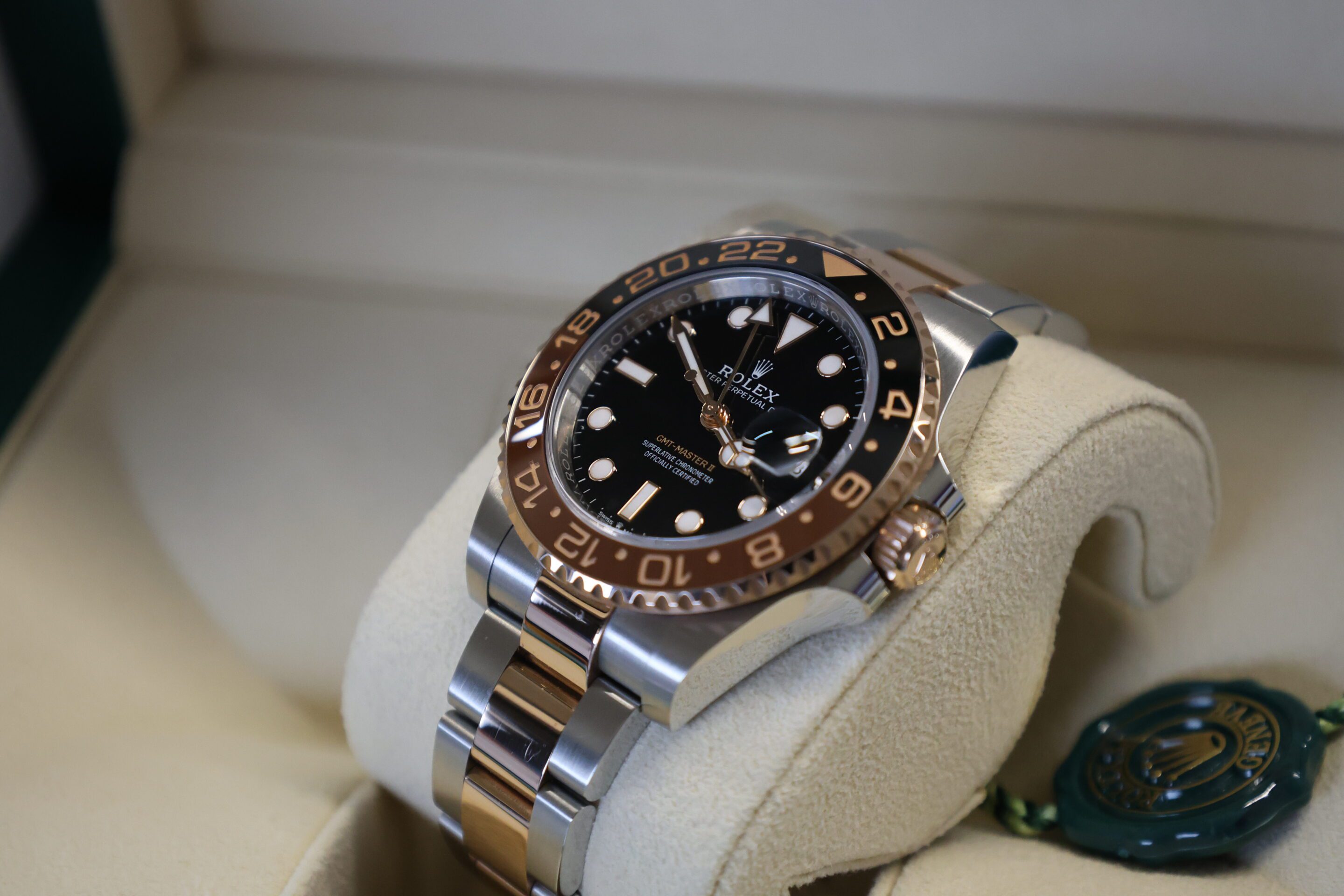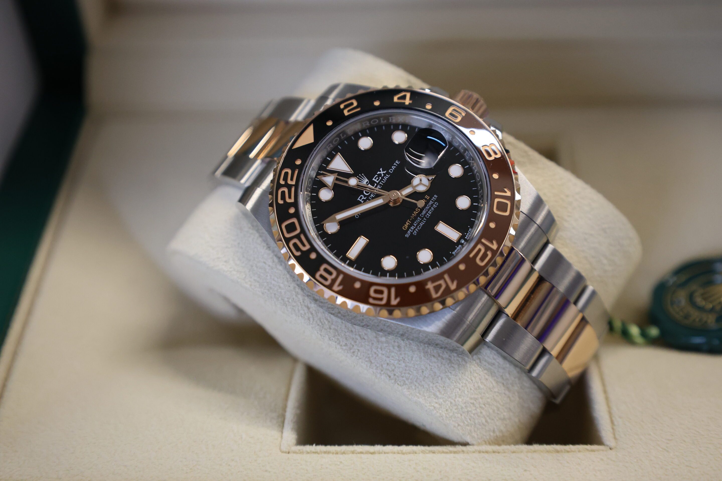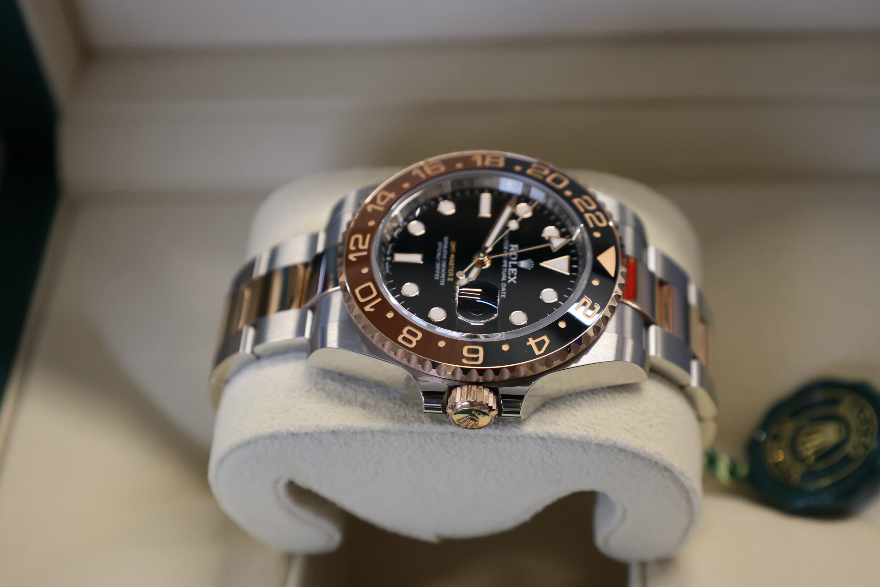 The Stunning Rolex GMT Master II with Bi-Metal Rose Gold & Steel bracelet and two tone bezel famously known as the ‘Root Beer’