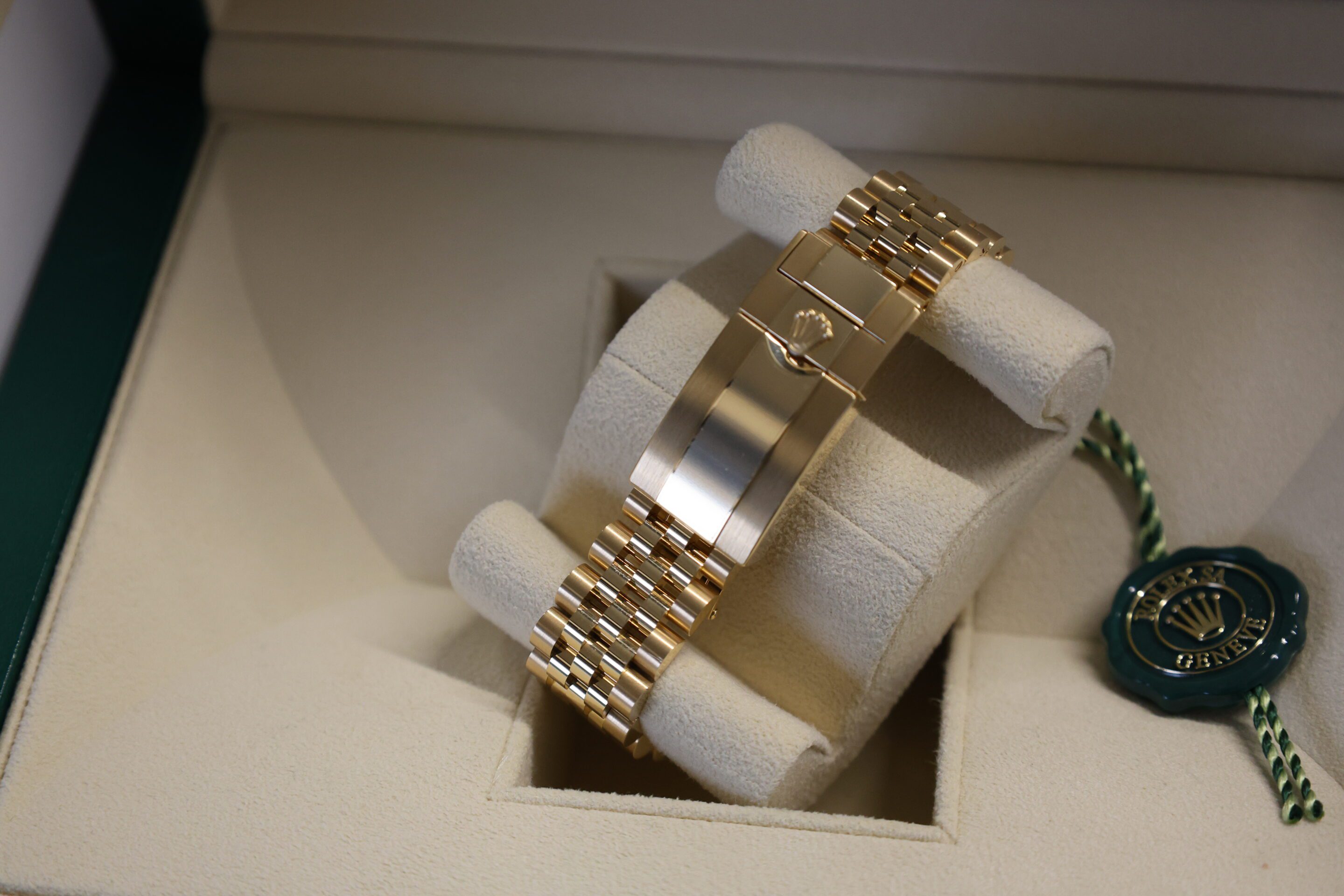 This watch is an unworn 2024 example and comes complete with everything: the Rolex Box, the Papers, and the remaining 3-year Rolex warranty.