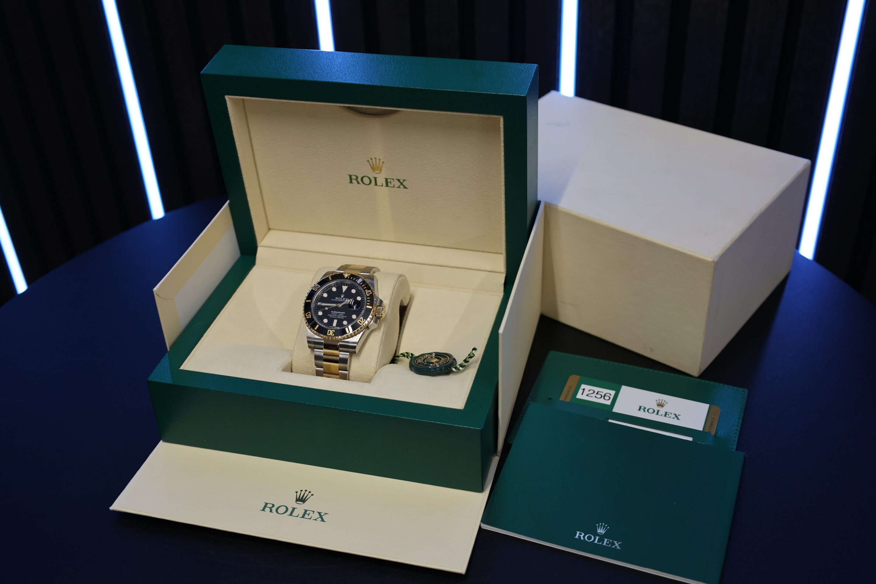 The black face against the gold and steel just looks bonkers on your wrist. This one is an immaculate example, complete with box & papers.