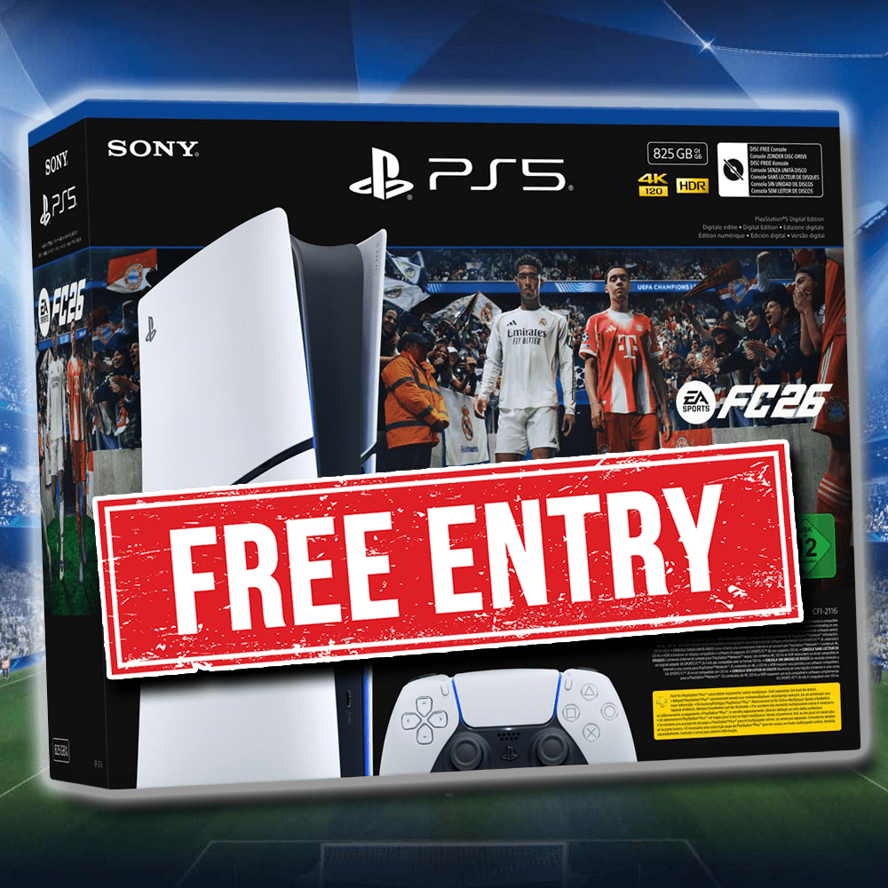 Simply add your tickets to your basket and be entered into the draw to win this brand spanking new Playstation 5 + FC26!