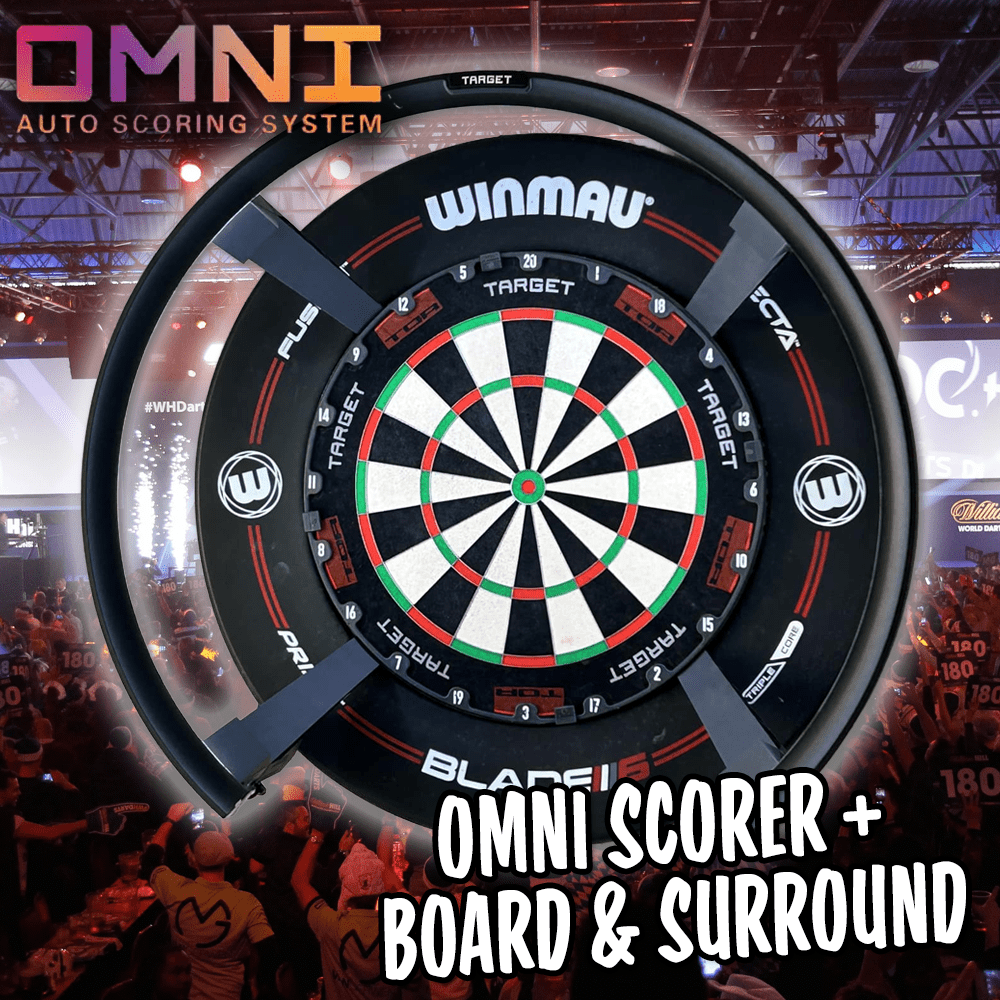TARGET Omni Scoring System + Winmau Blade 6 Triple Core Dartboard & Pro Surround – RRP £650