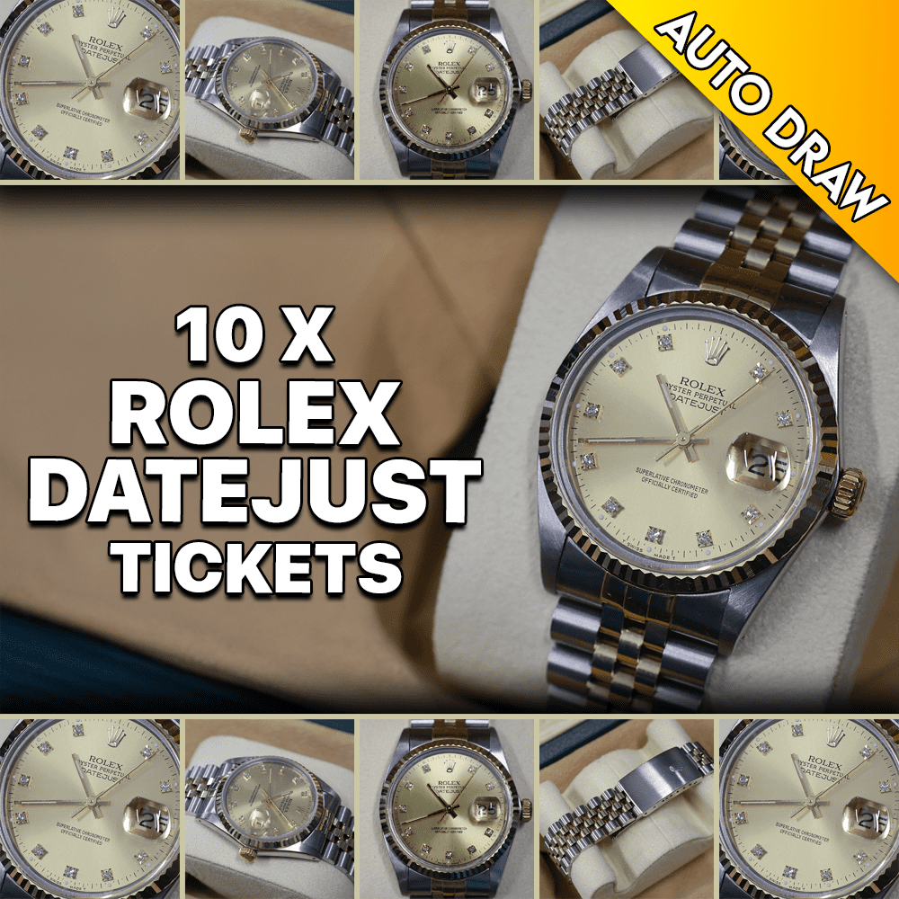 WIN YOURSELF 10x TICKET ENTRIES INTO THE ROLEX DATEJUST DRAW! GIVE YOURSELF A FANTASTIC CHANCE OF WINNING THE WATCH OR THE CASH ALTERNATIVE!