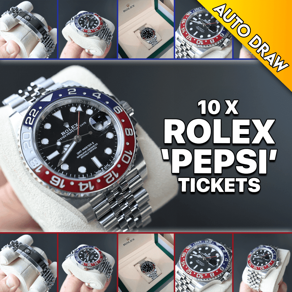 WIN YOURSELF 10x TICKET ENTRIES INTO THE ROLEX GMT ‘PEPSI’ DRAW! GIVE YOURSELF A FANTASTIC CHANCE OF WINNING THE WATCH OR THE £16,000 CASH ALTERNATIVE!