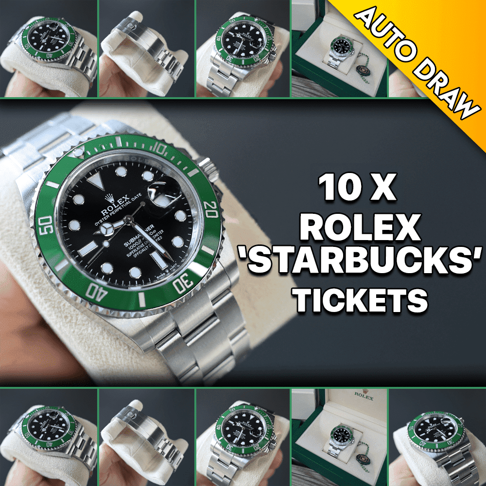 WIN YOURSELF 10x TICKET ENTRIES INTO THE ROLEX SUBMARINER ‘STARBUCKS’ DRAW! GIVE YOURSELF A FANTASTIC CHANCE OF WINNING THE WATCH OR THE CASH ALTERNATIVE!