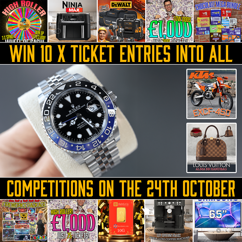 Ten ticket entries into every prize up on the 24th October, giving you a HUGE chance to bag yourself a prize or two… or three!