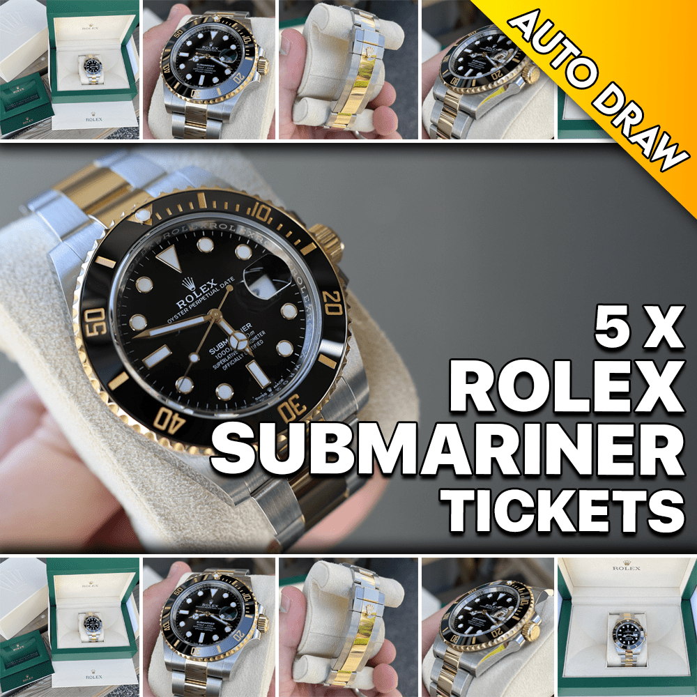 WIN YOURSELF 5x TICKET ENTRIES INTO THE ROLEX SUBMARINER BI-METAL DRAW! GIVE YOURSELF A FANTASTIC CHANCE OF WINNING THE WATCH OR THE Available. CASH ALTERNATIVE!