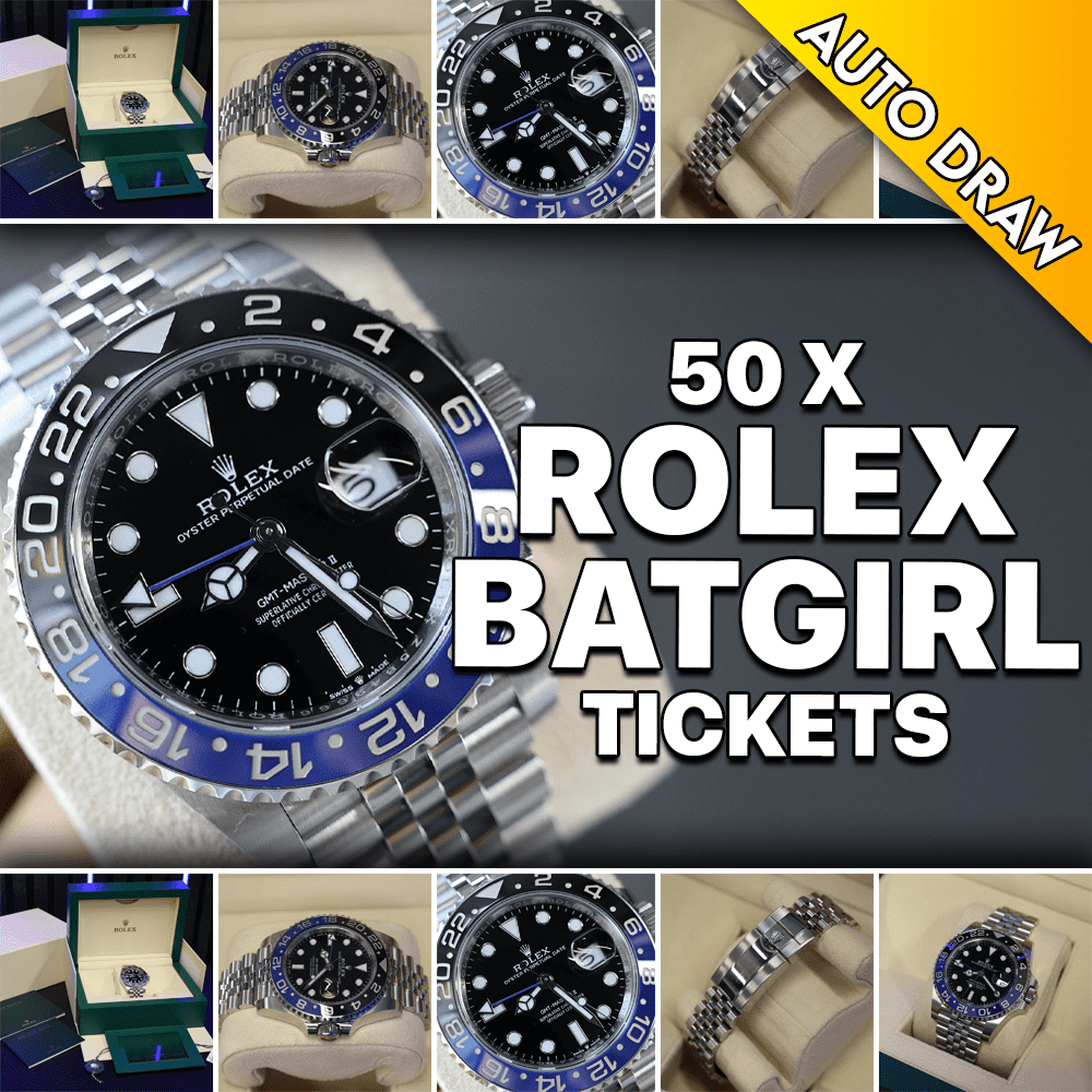 WIN YOURSELF 50x TICKET ENTRIES INTO THE ROLEX GMT BATGIRL DRAW! GIVE YOURSELF A FANTASTIC CHANCE OF WINNING THE WATCH OR THE £12,000 CASH ALTERNATIVE!